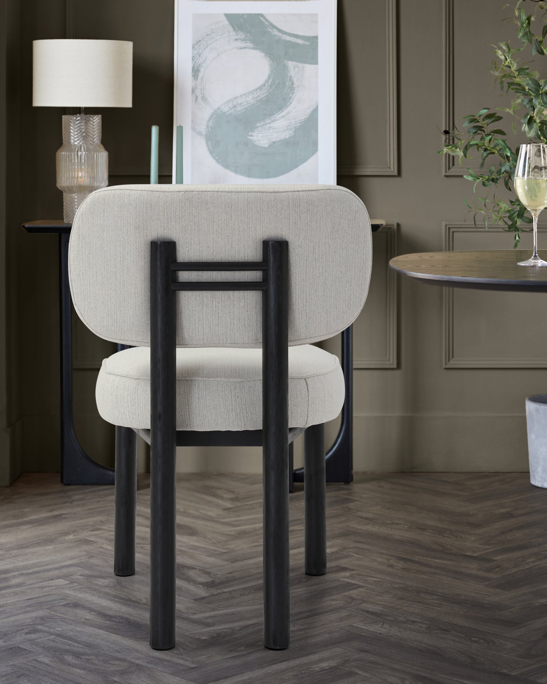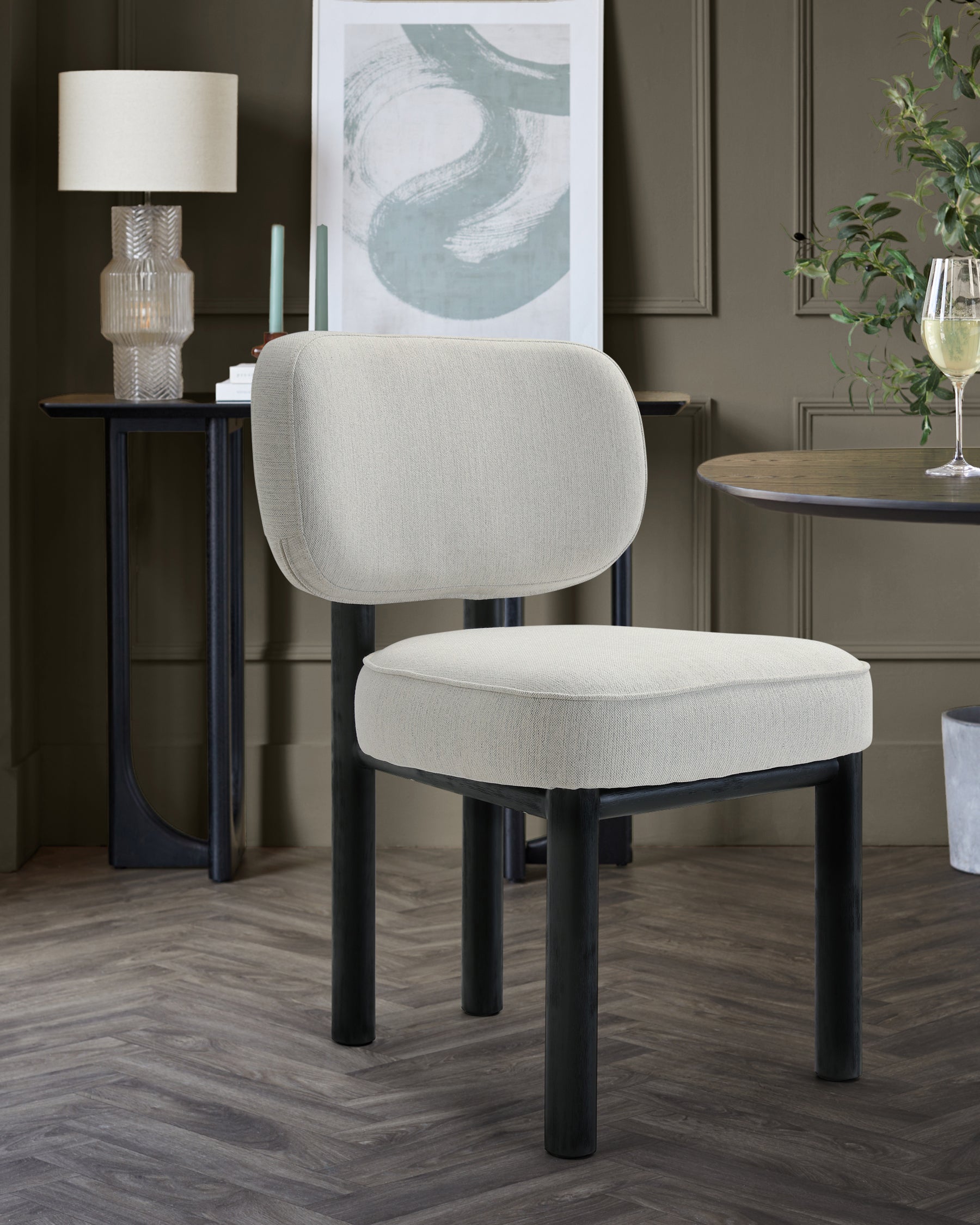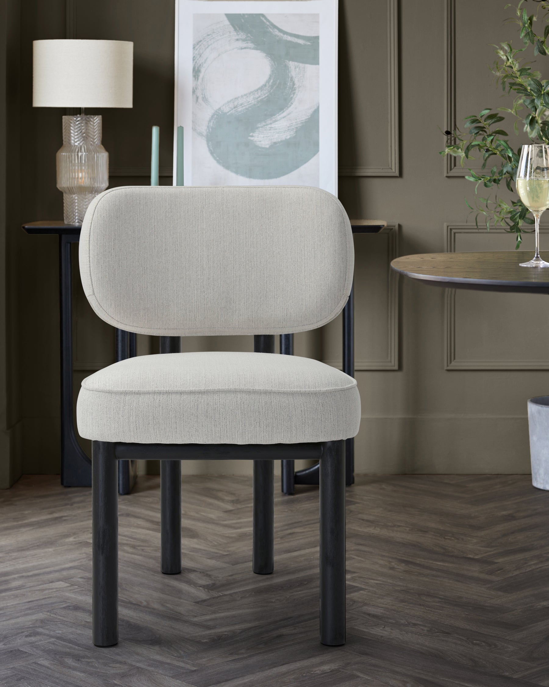 Thoughtfully designed for real life, the Henley ivory dual tone fabric dining chair brings comfort and style to every gathering. Its curved seat with gentle concave shaping cradles you perfectly, while the distinctive base - blending tripod aesthetics with four-leg stability - creates visual interest. The soft, two-tone ivory fabric adds warmth to any dining space.