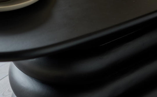 The Hepworth black wood 8 seater dining table makes a striking statement with its sculptural fluted pedestal base and rich black mango wood finish. Designed in our Berkshire studio, this generously sized table seats 8 comfortably, creating the perfect setting for weeknight dinners and weekend gatherings alike. The solid construction and timeless design ensure it ages gracefully through years of shared meals.