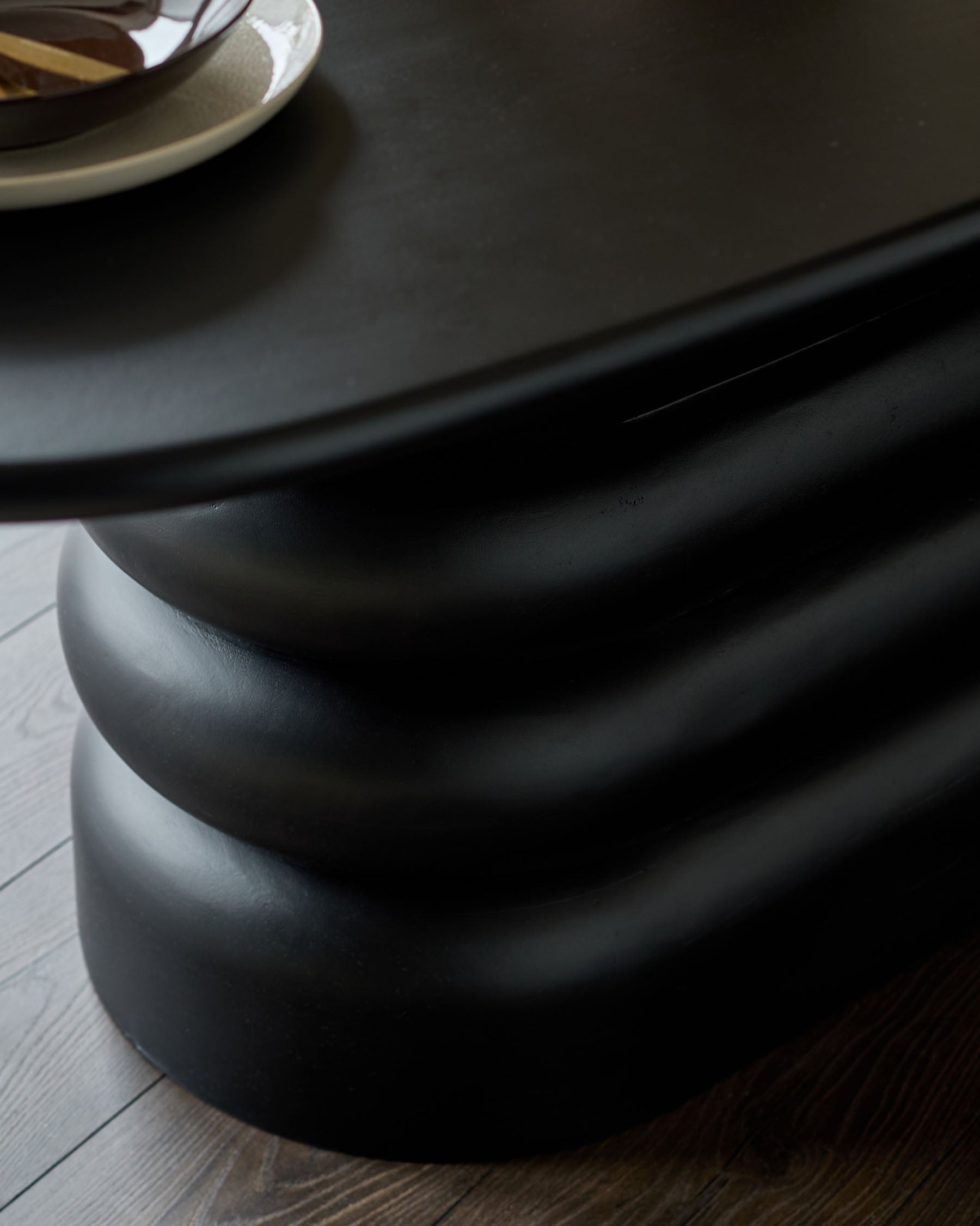 - Sculptural stacked fluted pedestal base