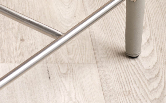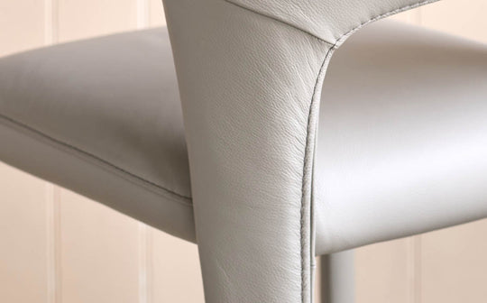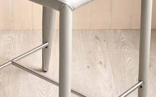 The Jackson light grey leather bar stool combines sculptural style with everyday comfort. Upholstered in genuine leather with a foam and fibre seat that offers supportive comfort, it's built for those lingering breakfast conversations. The stainless steel footrest provides a bold contrast while the solid wooden frame ensures stability for years to come.