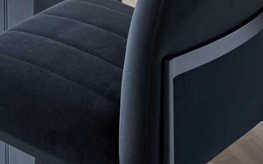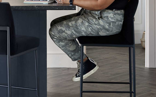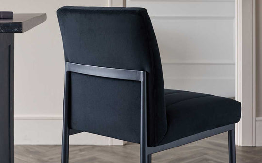 Effortlessly sophisticated, the Kendra black velvet bar stool brings refined comfort to your kitchen island or home bar. Upholstered in luxurious classic black velvet with distinctive vertical ribbing, this fixed-height stool offers the perfect perch for morning coffee or evening gatherings. The sleek black metal frame adds contemporary edge whilst ensuring lasting stability.