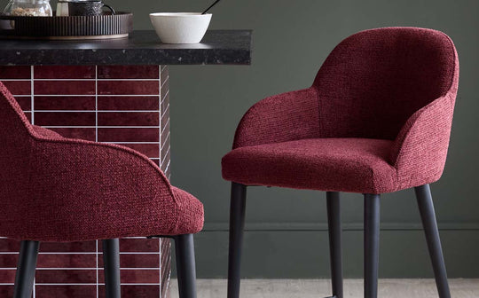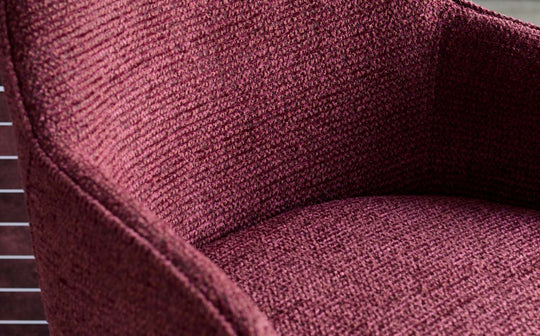 Make a statement at your breakfast bar with the Lani berry red chunky fabric bar stool. Wrapped in soft, textured chenille in a bold berry shade, this comfortable perch features generous cushioning and a gently curved backrest that supports those leisurely morning coffees. The slim black steel legs and built-in footrest combine style with everyday practicality.