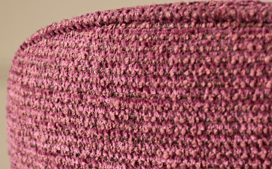 Close-up of a stylish armchair in a rich, textured maroon fabric. A cosy and inviting furniture piece.
