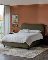 The Lani olive green velvet king ottoman storage bed combines sophisticated style with smart storage solutions. Its curved silhouette and cushioned headboard create a soft, contemporary focal point, while the luxurious olive green recycled velvet brings richness to your bedroom. The spacious ottoman compartment keeps bedding and seasonal items neatly hidden, with powerful hydraulic pistons making access effortless.
