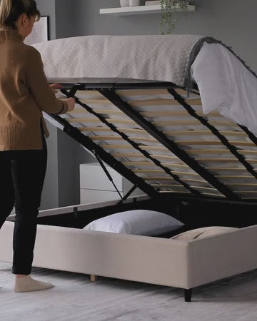 The Lenora cream fabric super king size ottoman storage bed combines sophisticated style with clever storage solutions. Its tall, winged headboard with elegant button detailing creates an impressive focal point, while the luxuriously soft cream fabric adds warmth to any bedroom. Beneath the mattress, spacious ottoman storage accessed via durable hydraulic pistons provides the perfect hiding place for extra bedding and blankets.