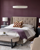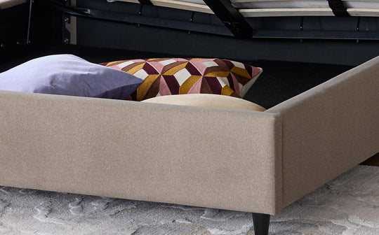 The Lenora mocha fabric super king ottoman storage bed combines luxurious comfort with clever storage solutions. Its rich mocha fabric upholstery creates a warm, inviting atmosphere, while the winged headboard adds classic sophistication. Beneath the generous super king mattress area lies a spacious 15cm deep storage compartment, accessed via smooth hydraulic pistons - perfect for bedding, seasonal clothing and those bulky items that need a home.