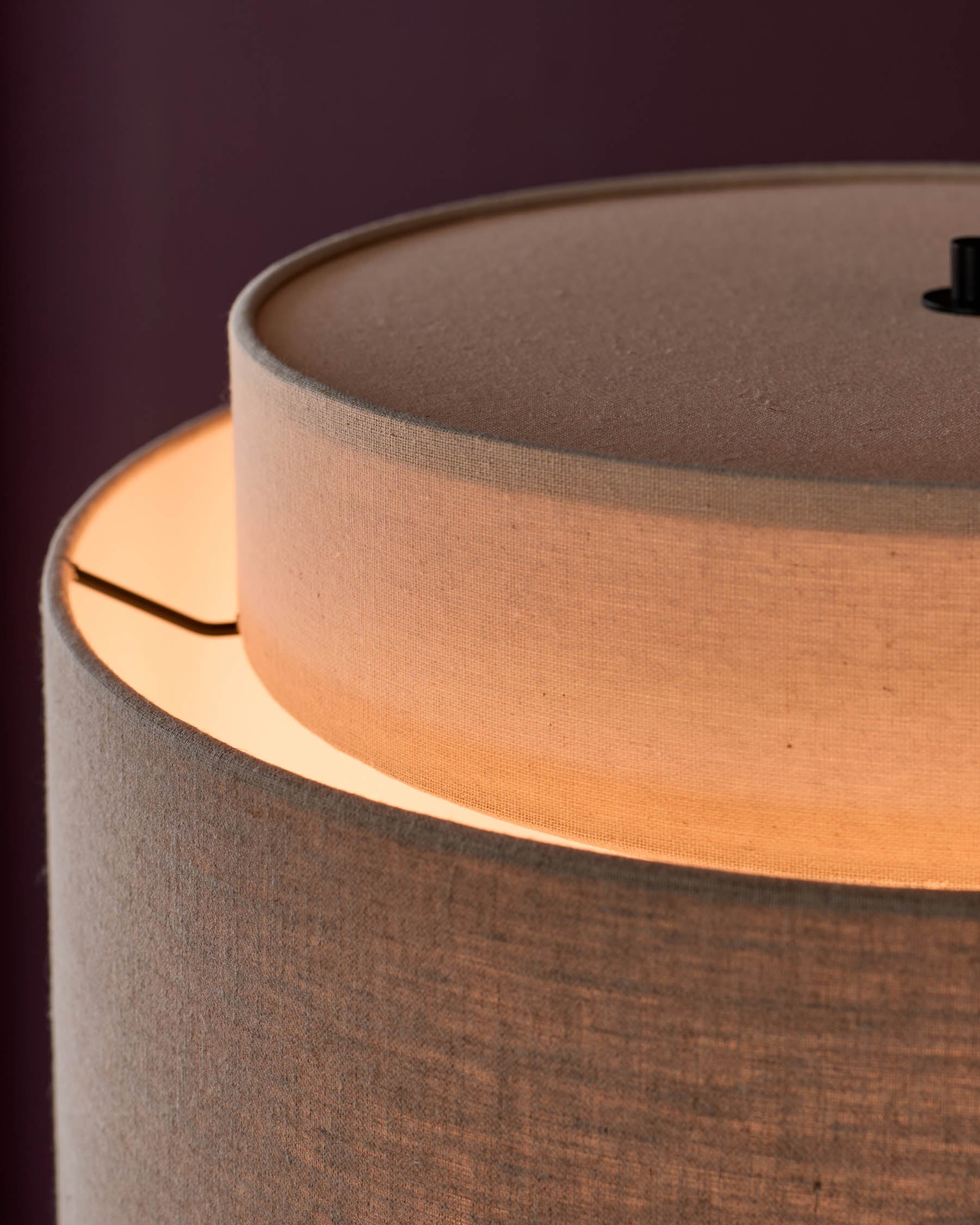The Leonie natural and mocha linen black wood floor lamp brings sophisticated warmth to any corner of your home. Its double-layered linen shade creates beautiful tonal depth, mocha outside, natural within, while the built-in diffuser casts an even, ambient glow. Standing tall on a solid black wood base, this exclusively designed piece strikes the perfect balance between natural texture and contemporary style.