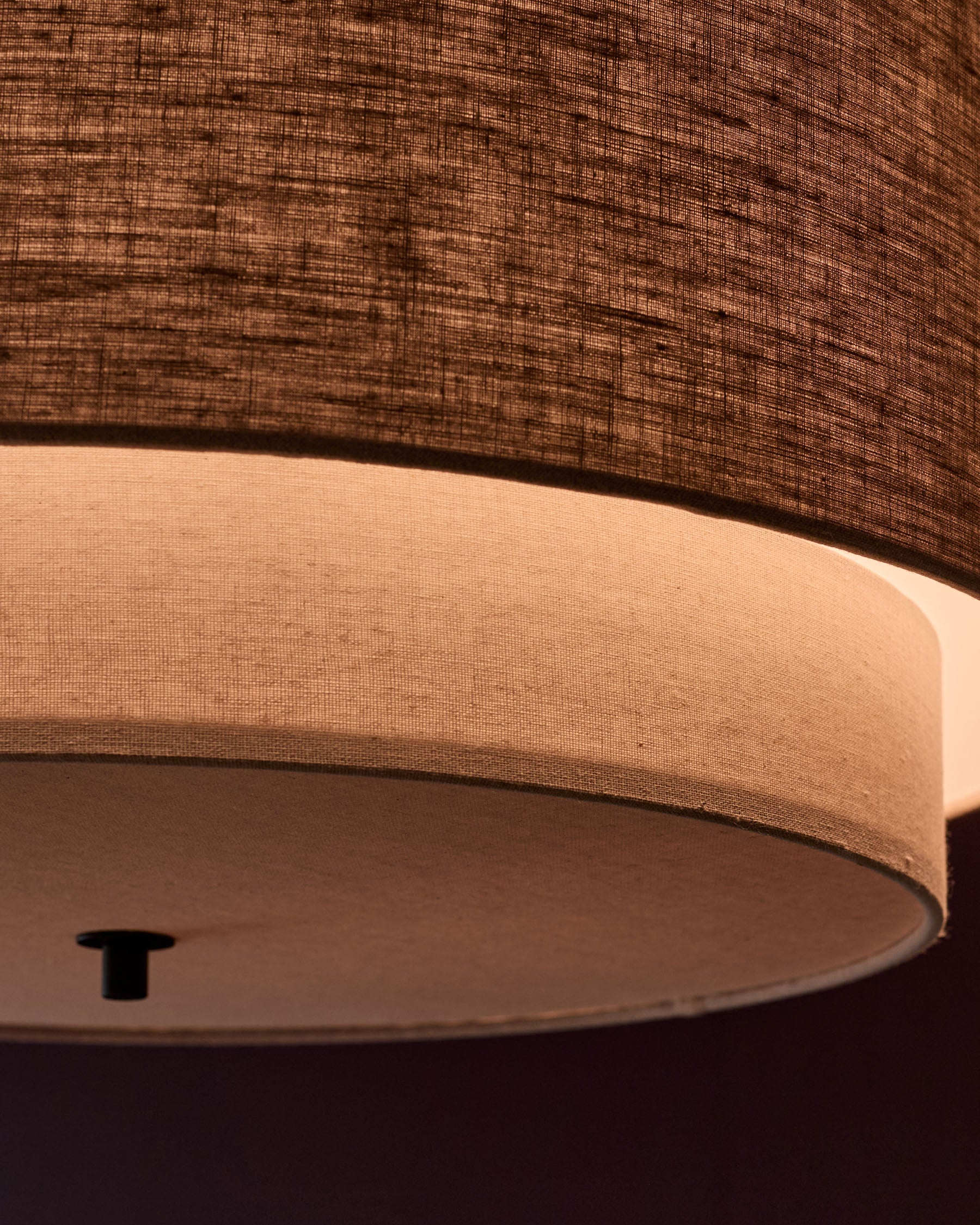 Transform your space with the Leonie natural and mocha linen large round pendant. This thoughtfully designed piece brings warmth and texture through its double-layered linen shade - mocha outside, natural within - creating subtle depth that catches the eye. The built-in diffuser ensures soft, even lighting while the height-adjustable suspension adapts effortlessly to dining areas, living spaces or bedrooms.
