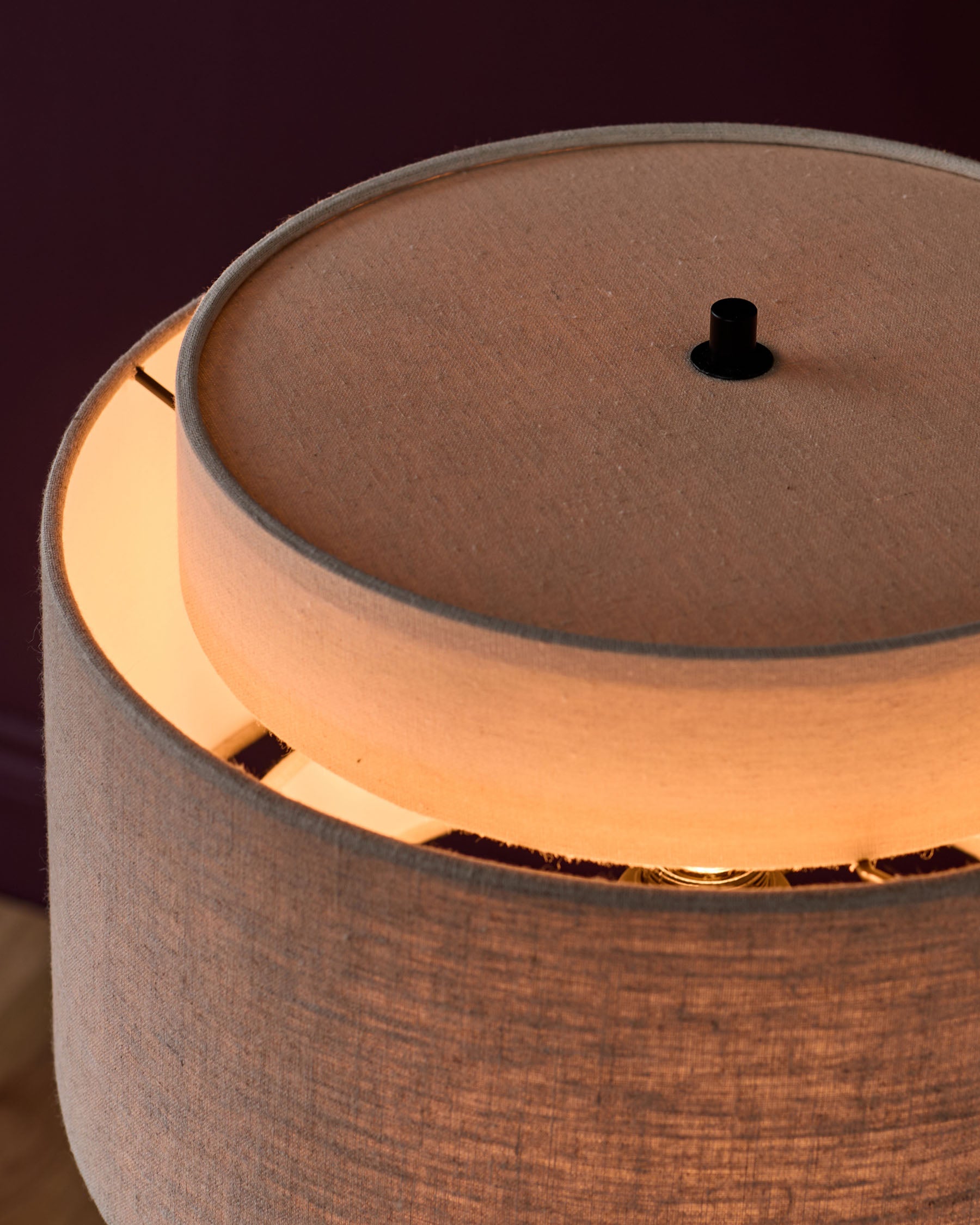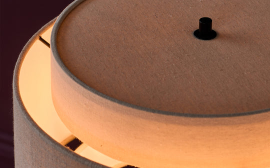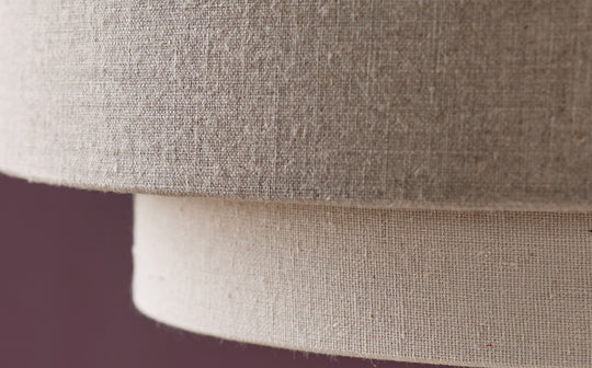 - Double-layered linen shade in mocha and natural tones