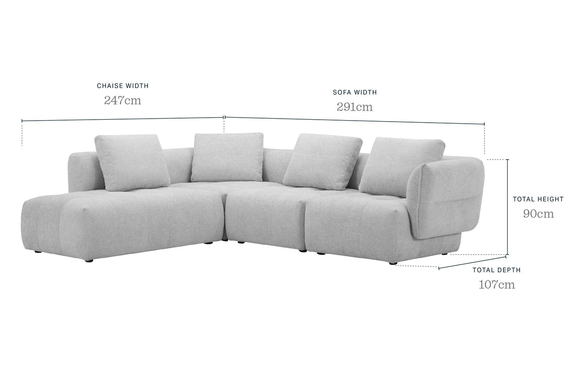 - Size: W: 291cm (sofa) / 247cm (chaise) x D: 107cm x H: 90cm