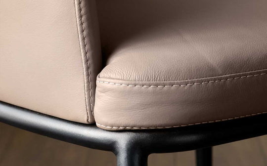 The Logan mocha leather dining chair brings warmth and sophistication to your dining space with its rich, earthy tone and enveloping comfort. Crafted from genuine leather with a sculptural black metal frame, this chair is built for real life - from weeknight dinners to celebrations that run late. The high backrest and supportive armrests create a refined sit that invites lingering conversations.