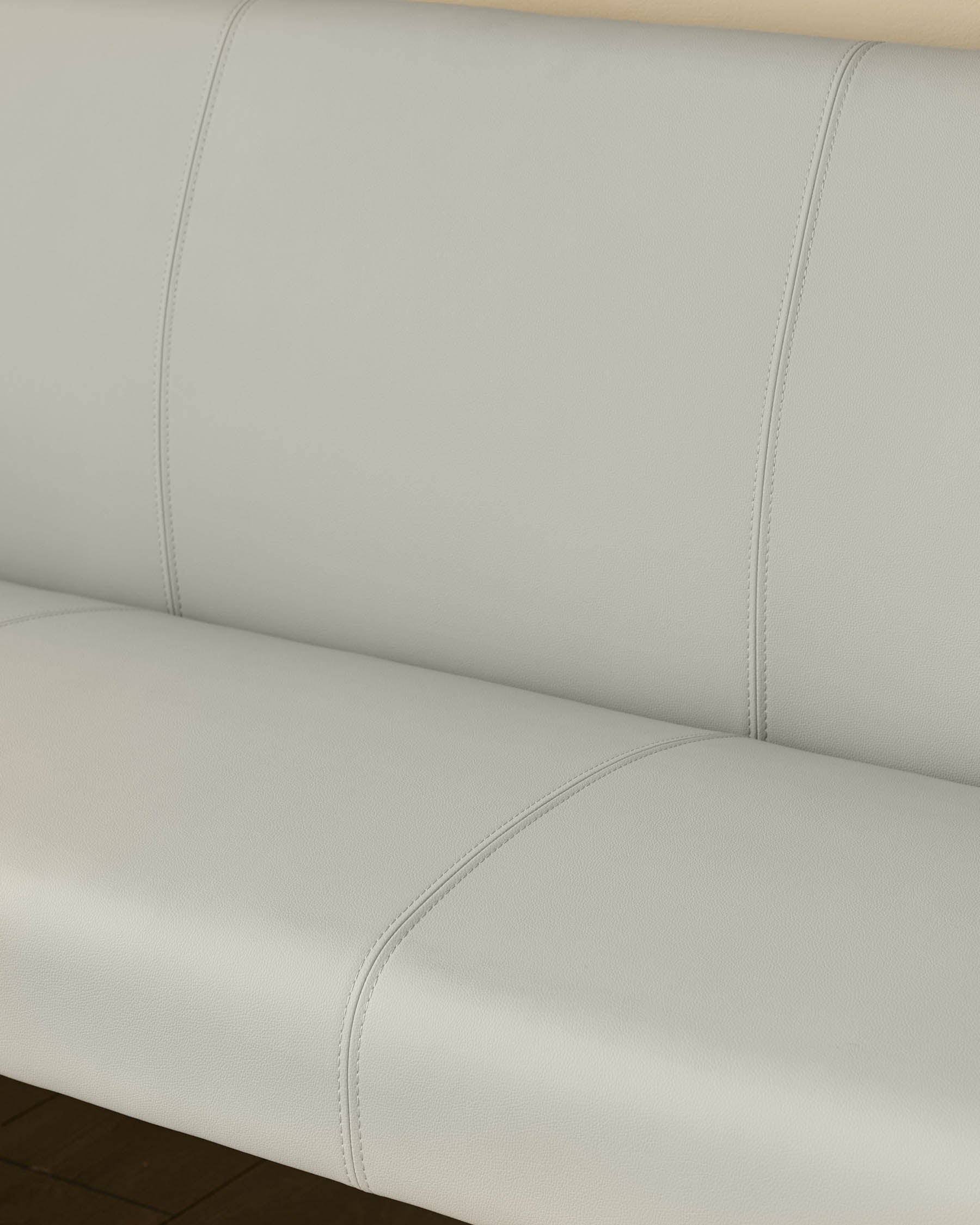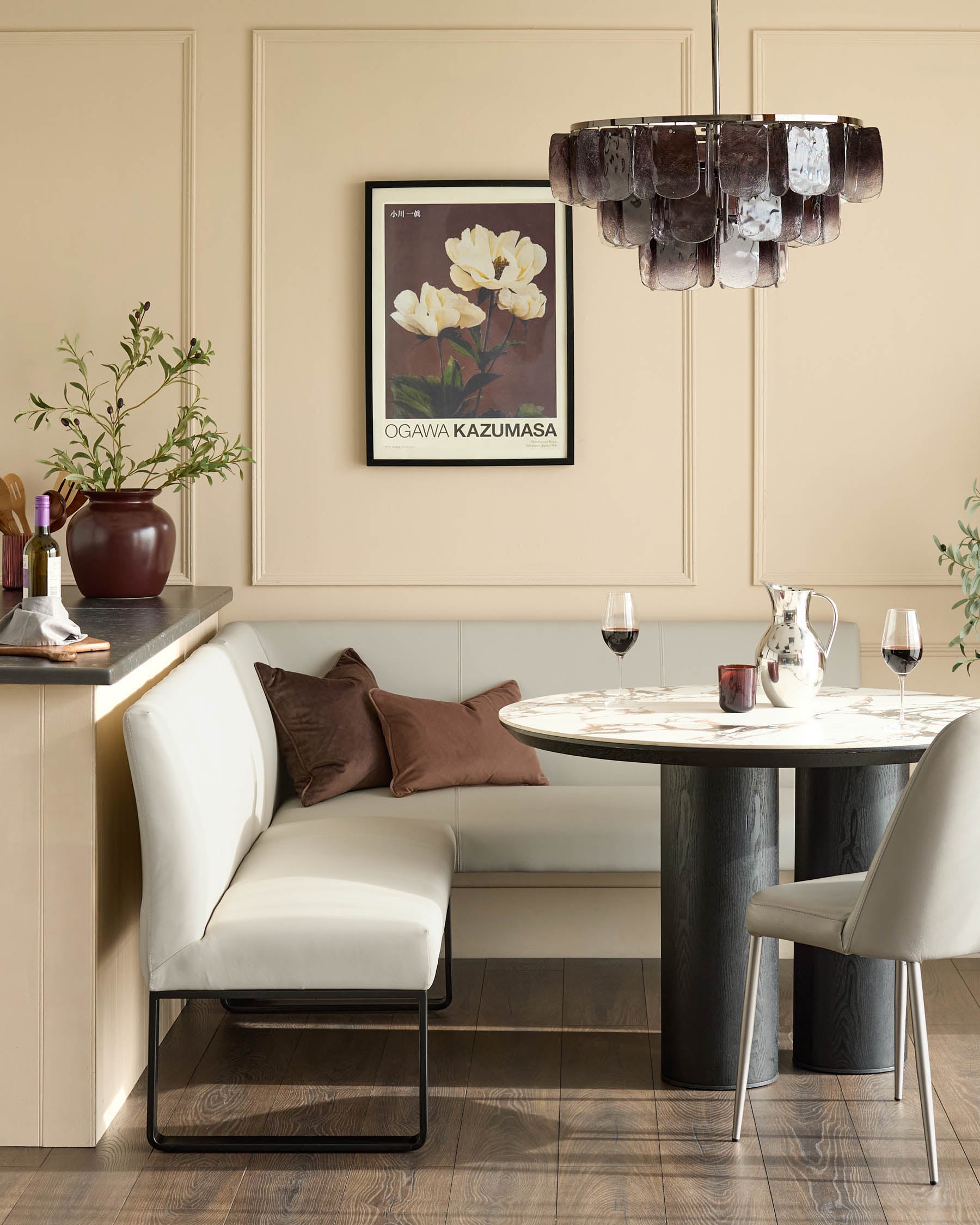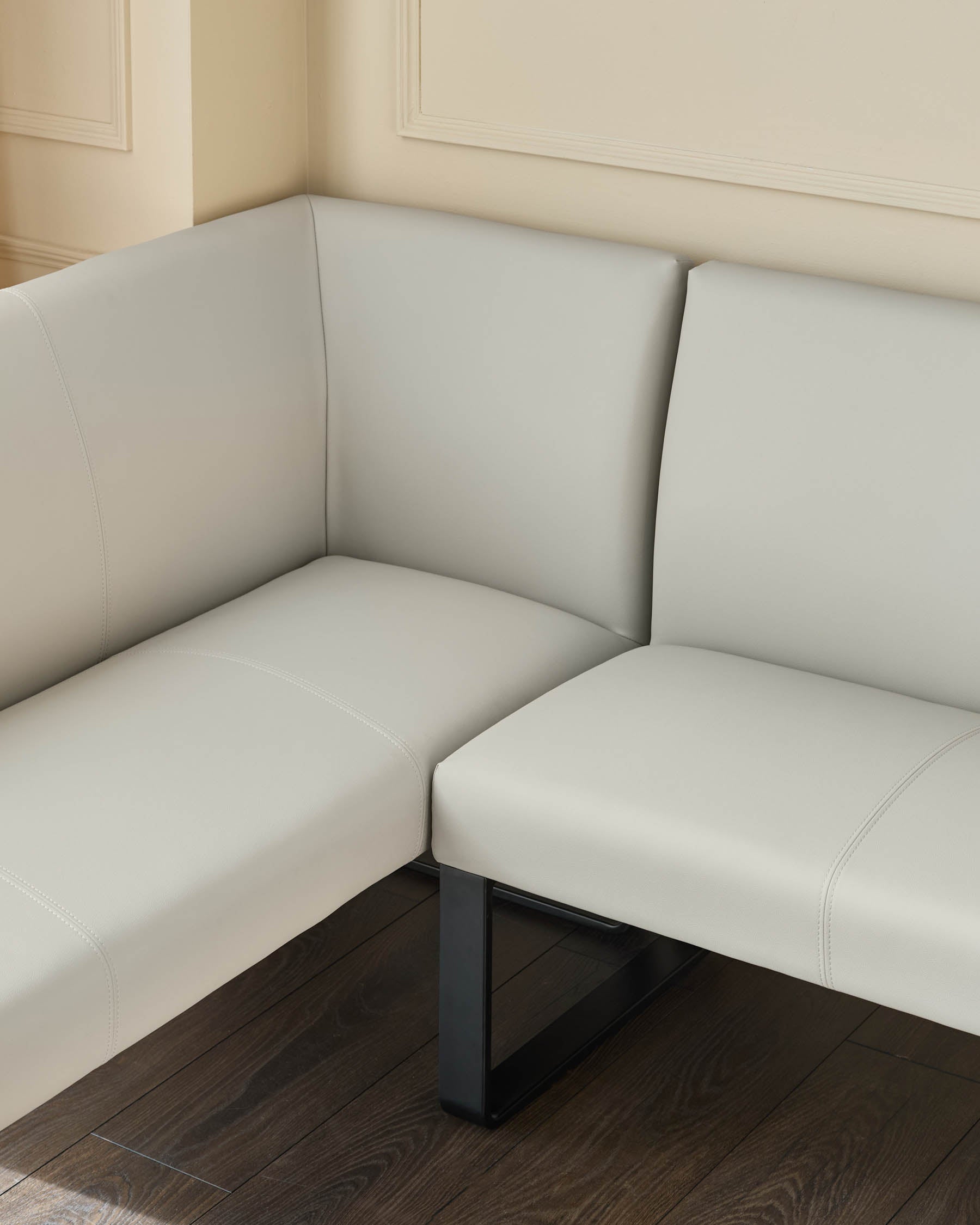 The Loop 5-seater left-hand corner bench brings contemporary style and clever space-saving design to your dining area. Perfect for relaxed family meals or dinner parties, this generously sized bench seats five comfortably. Light grey faux leather upholstery paired with sleek black metal legs creates a modern look that works beautifully with pedestal tables and open-plan living.