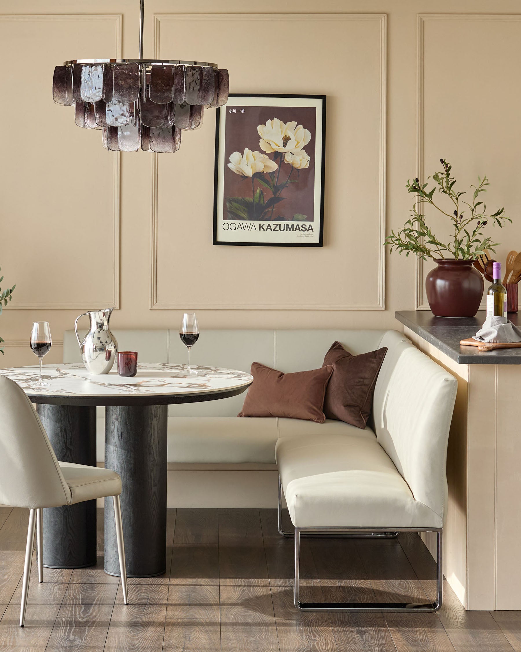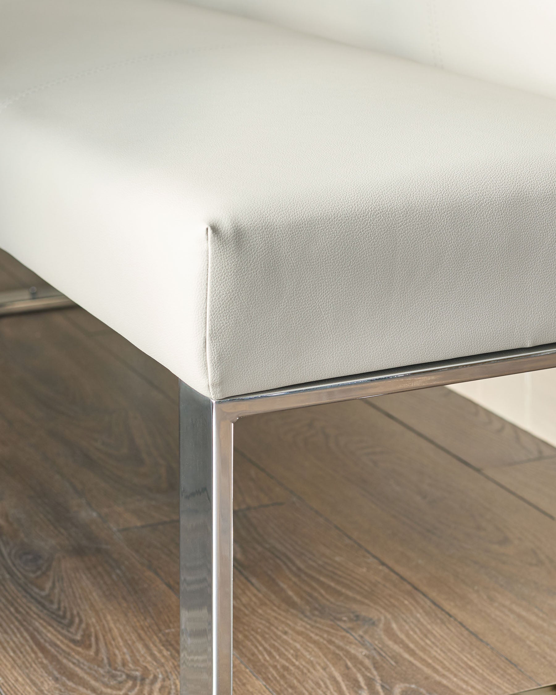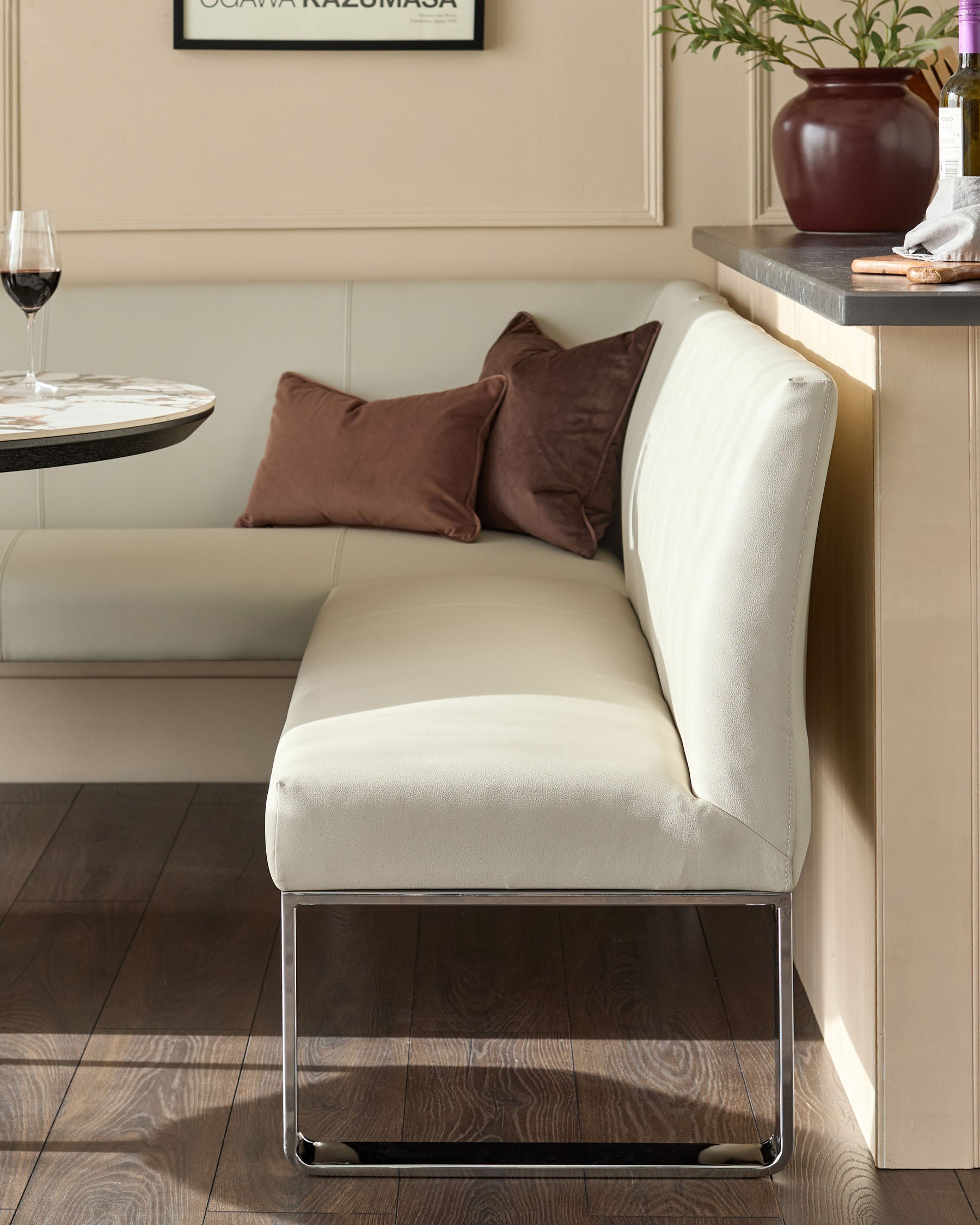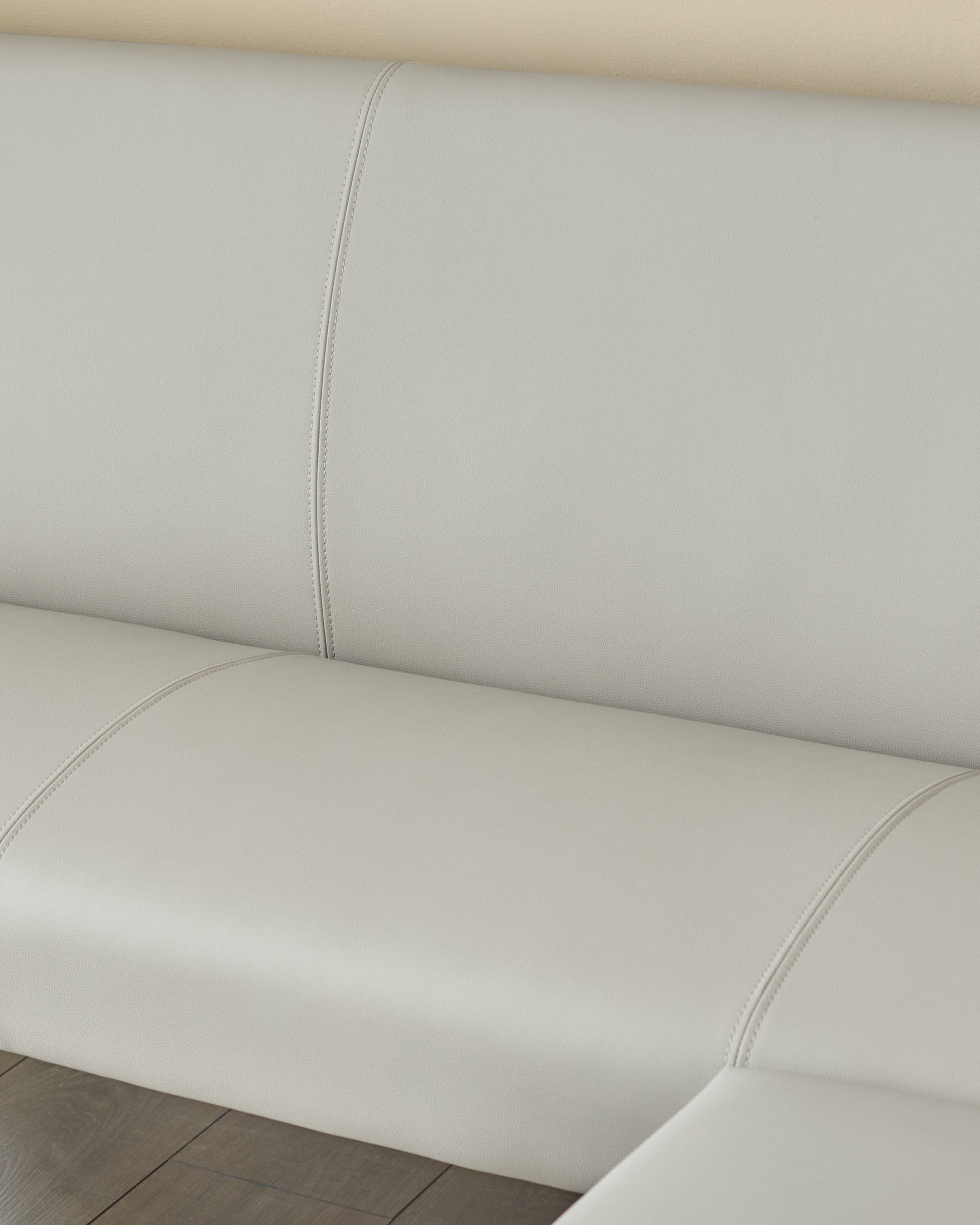 The Loop light grey faux leather corner dining bench brings contemporary comfort to your dining space. Its right-hand corner design naturally defines the room, creating an inviting spot for meals and conversations. With seating for 5, supportive high backs and sag-resistant cushions that maintain their shape through daily use, this bench transforms mealtimes into moments worth gathering for.