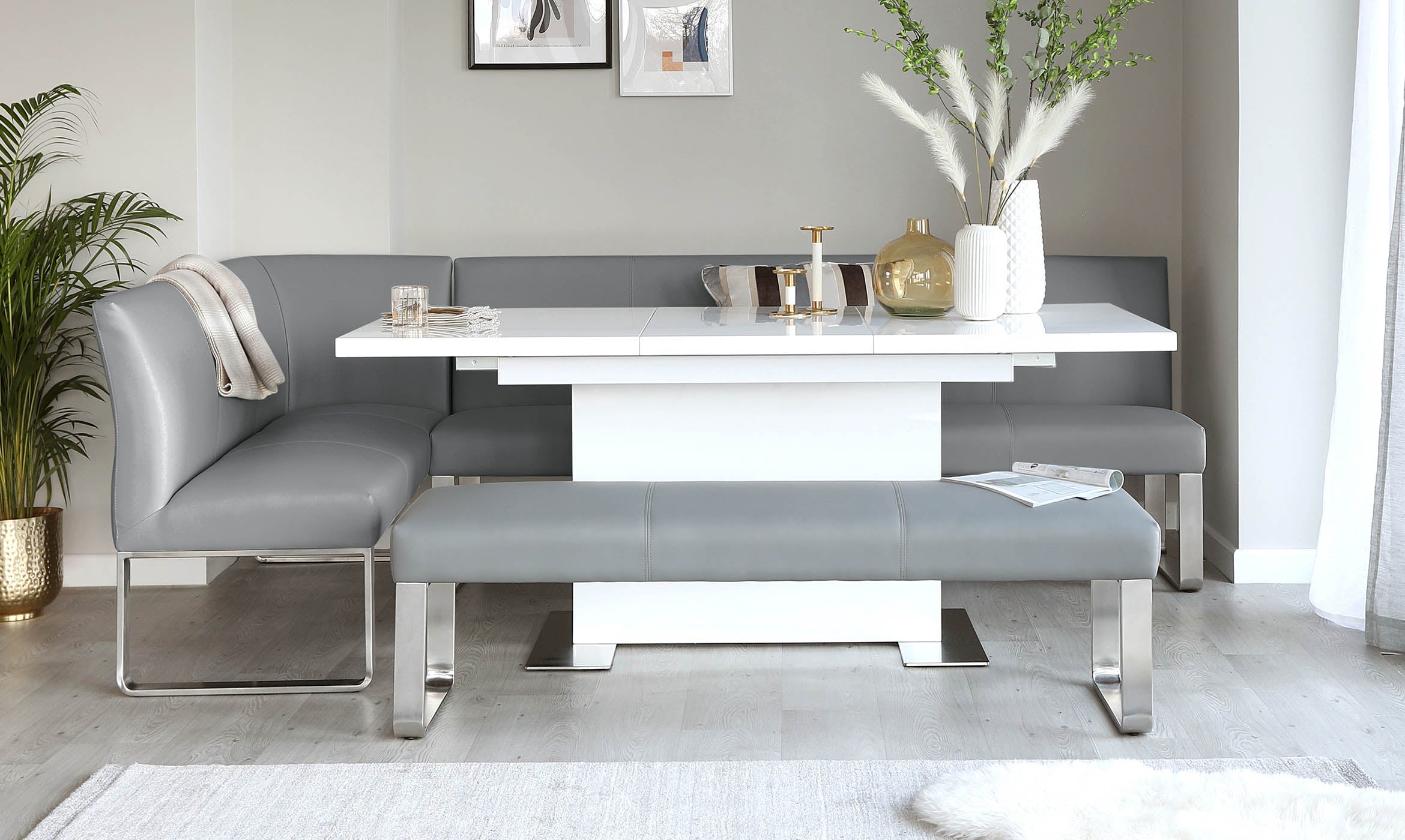 Loop 5 Seater Grey Faux Leather & Stainless Steel Left Hand Corner Dining Bench