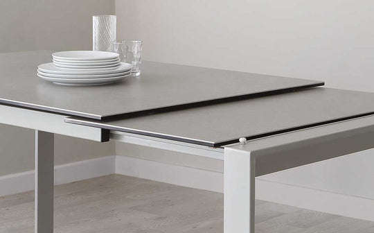 Create the perfect setting for memorable gatherings with the Louis extending dining table. This clever design effortlessly transforms from an intimate 6-seater to a spacious 8-seater, thanks to its discreet butterfly extension mechanism. The light grey ceramic top offers both sophisticated style and practical durability, standing up beautifully to daily life while remaining effortlessly easy to clean.