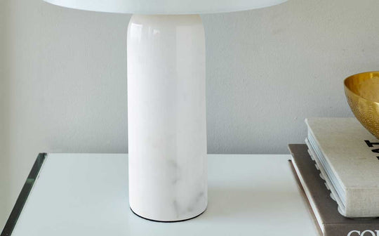 The Louis white marble shaded table lamp brings understated luxury to any room with its striking marble base and crisp white faux silk shade. Each marble base features unique natural veining, making every piece one-of-a-kind. Perfect for bedside tables, console tables or desks, this contemporary lamp creates a soft, inviting glow that works beautifully in minimalist and modern interiors.