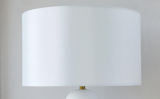 - Crisp white faux silk shade for soft light diffusion