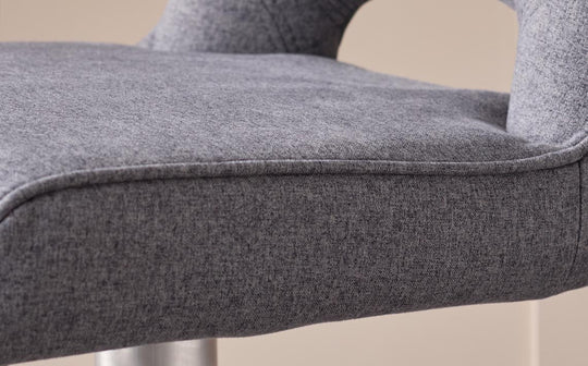 Bring sophisticated comfort to your breakfast bar with the Ludo bar stool. Upholstered in soft, dark grey melange fabric, its gently curved seat and back create the perfect perch for morning coffee or evening drinks. The gas lift mechanism adjusts smoothly to suit any counter height, while the 360-degree swivel makes conversation effortless.