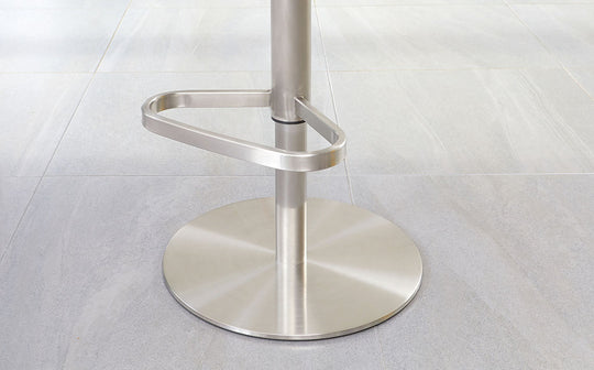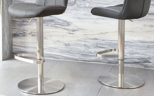 Bring sophisticated seating to your breakfast bar with the Lumos gas lift bar stool. Upholstered in mid-grey faux leather with elegant diamond quilting, this adjustable stool combines comfort with contemporary style. The stainless-steel base offers smooth height adjustment and 360-degree swivel, making it perfect for kitchen islands and home bars where flexibility meets refined design.