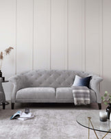 Thoughtfully reimagined for modern living, the Luxe 2 seater sofa brings classic Chesterfield elegance to your home. Upholstered in sumptuous mid-grey fabric with signature deep-buttoned detailing, this sofa transforms any space into a sophisticated retreat. The fixed foam seating offers medium support that's perfect for both afternoon reading and evening gatherings.