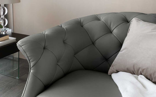 The Luxe armchair brings together the sophistication of real leather with the warmth of dark wood for a piece that's both striking and inviting. Deep buttoning and quilted detailing create visual interest, while the gently curved silhouette and rolled arms offer a cosy spot to unwind. Perfect for creating a reading corner or adding character to your living space.
