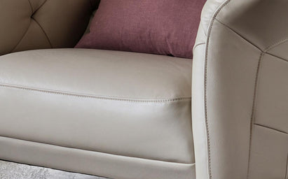 The Luxe natural leather armchair brings timeless sophistication to your living space. Upholstered in genuine natural grey leather with distinctive quilted detailing and deep buttoning, this Chesterfield-inspired piece offers premium medium-sit support. Its generous proportions and flared arms create an inviting spot for reading, relaxing, or conversation.