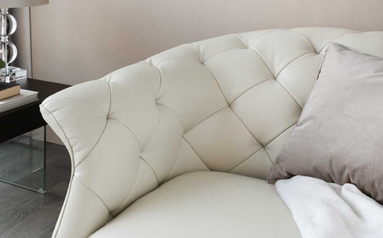 The Luxe Modern armchair brings sophisticated comfort to your living space with its sumptuous white real leather upholstery and rich dark wood legs. The beautifully quilted back and front create visual depth, while the curved silhouette offers a cocoon of comfort. Perfect for creating an intimate reading corner or adding a statement piece to your living room where conversations flow naturally.