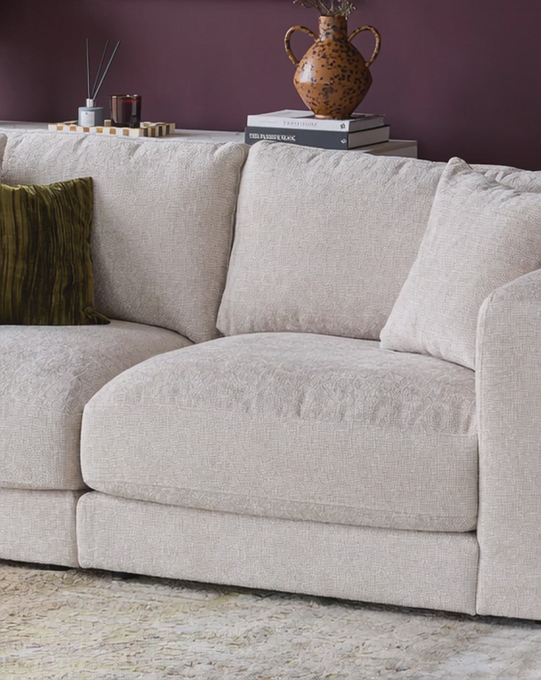 Create your perfect seating arrangement with the Lynetta natural weave single sofa module. This versatile piece works brilliantly alone as a cosy reading spot or combines with other modules to build your ideal sofa configuration. The tactile chunky weave fabric and cloud-like cushioning filled with feather, foam and fibre create an irresistibly comfortable seat that's made for lazy Sunday afternoons.