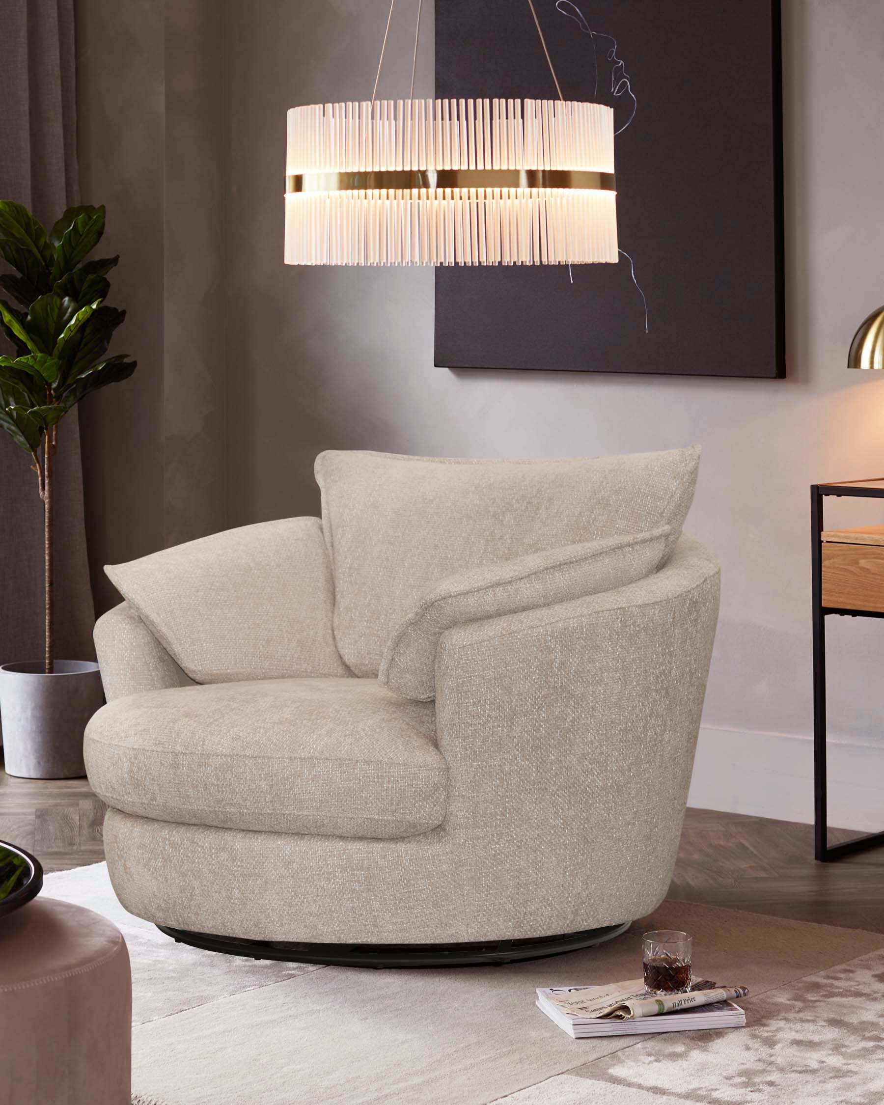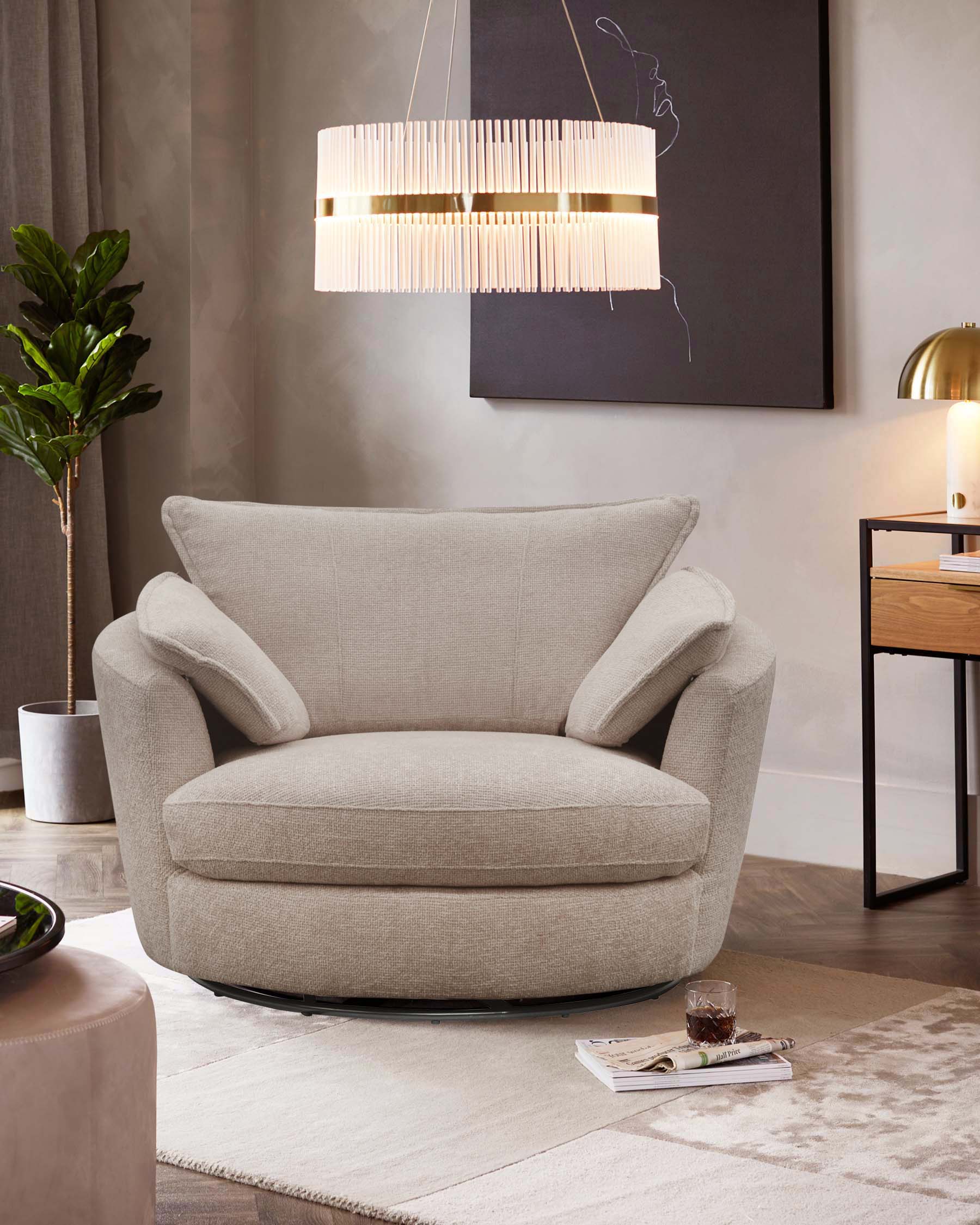 - What are the advantages of a swivel accent chair?Swivel accent chairs offer several advantages over stationary chairs. Their 360-degree rotation allows for easy changes in viewing direction, making them ideal for socialising or watching television. This movement can also make it easier to get in and out of the chair, which is beneficial for individuals with mobility issues. Furthermore, a swivel chair can easily redirect attention to different parts of a room, offering flexibility in how you arrange and use your living space. This versatility makes them a great addition to living rooms, bedrooms, or home offices.