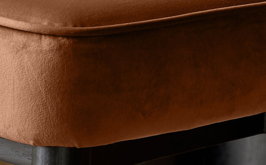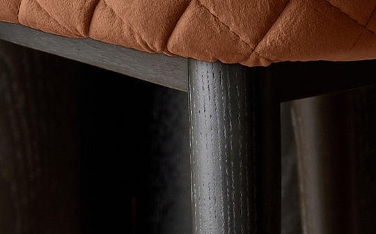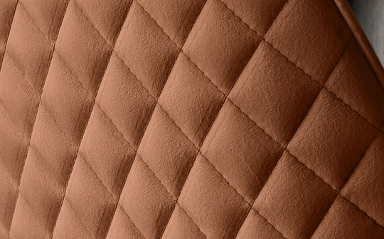 - Rust velvet upholstery with diamond quilting