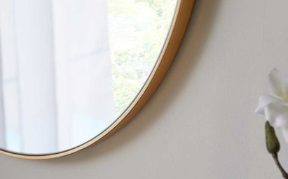 The Malva medium wall mirror brings instant glamour to any room with its elegant pill-shaped design and shimmering gold leaf frame. Perfect above a console table, sideboard or as a bedroom dressing mirror, this versatile piece hangs horizontally or vertically to suit your space. The slim profile and reflective surface create depth and light wherever you need it most.