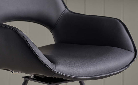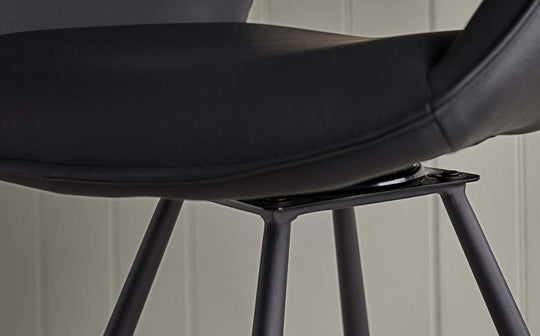 Effortlessly stylish and built for real life, the Marlow black faux leather swivel bar stool brings sophisticated comfort to your kitchen island or breakfast bar. With its generously padded seat and backrest upholstered in luxurious black faux leather, plus a smooth 360-degree swivel base, it's designed for those long conversations over morning coffee or evening drinks.