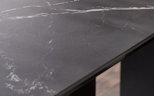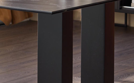 The Mia black ceramic dining table brings contemporary sophistication to mealtimes with its sleek pedestal base and scratch-resistant ceramic top. Comfortably seating 6, this striking table handles everything from hot dishes straight from the oven to dinner parties that run late. The spacious rectangular design and brushed stainless-steel accents create a centrepiece worthy of your best moments.