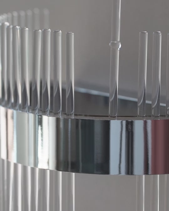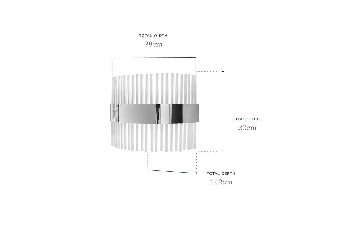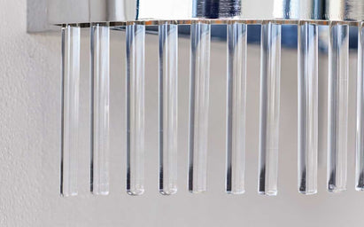 The Mila chrome half halo wall light brings contemporary sophistication to your walls with its striking curved design and hand-rolled glass rods. Each clear glass rod catches and reflects light beautifully, while the integrated LED ring casts a warm glow from both top and bottom. Perfect for creating ambient lighting in hallways, living rooms or bedrooms.
