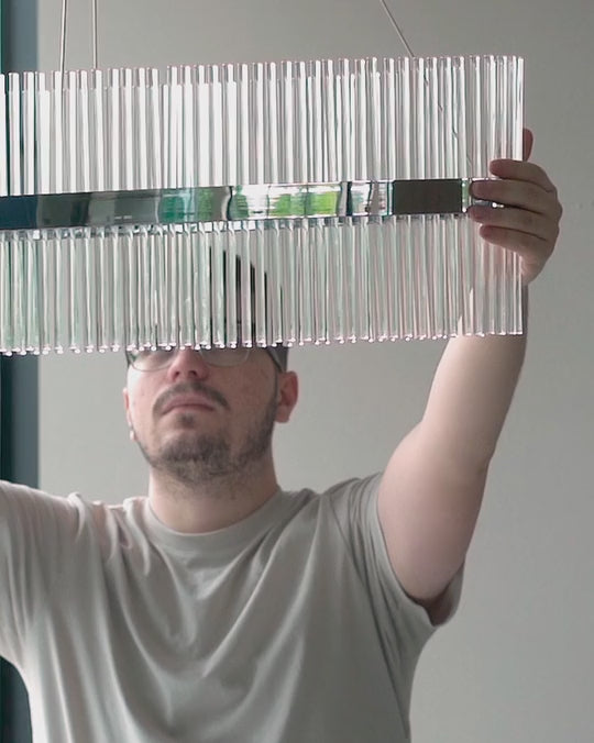 Make a statement with the Mila brushed brass round halo pendant - a showstopping centrepiece that transforms any room. Hand-rolled frosted glass rods create mesmerising patterns of light, while the integrated LED ring casts a warm glow from above and below. Perfect suspended over dining tables, kitchen islands or as a focal point in hallways and living spaces.
