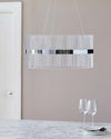 Transform your dining space with the Mila chrome round halo pendant - a striking centrepiece that combines artistry with illumination. Hand-rolled glass rods catch and refract light beautifully, while the polished chrome band adds contemporary sophistication. The integrated LED ring casts warm light both upward and downward, creating an inviting atmosphere perfect for intimate dinners or lively gatherings.