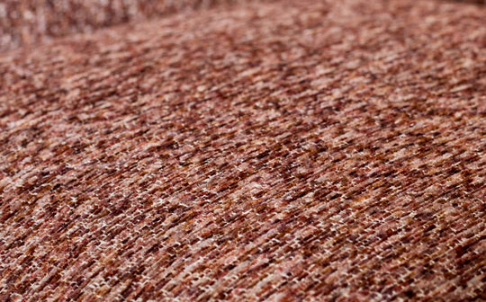 - Toffee red mosaic chenille and recycled velvet upholstery