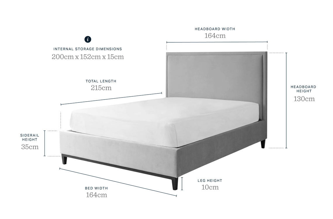 The Monica king size ottoman bed combines style and smart storage in one sophisticated package. Upholstered in soft natural chenille with champagne velvet trim, this bed brings subtle luxury to your bedroom. The generous ottoman storage beneath, accessed via durable hydraulic pistons, keeps bedding and essentials neatly tucked away while sprung slats provide excellent mattress support.