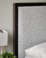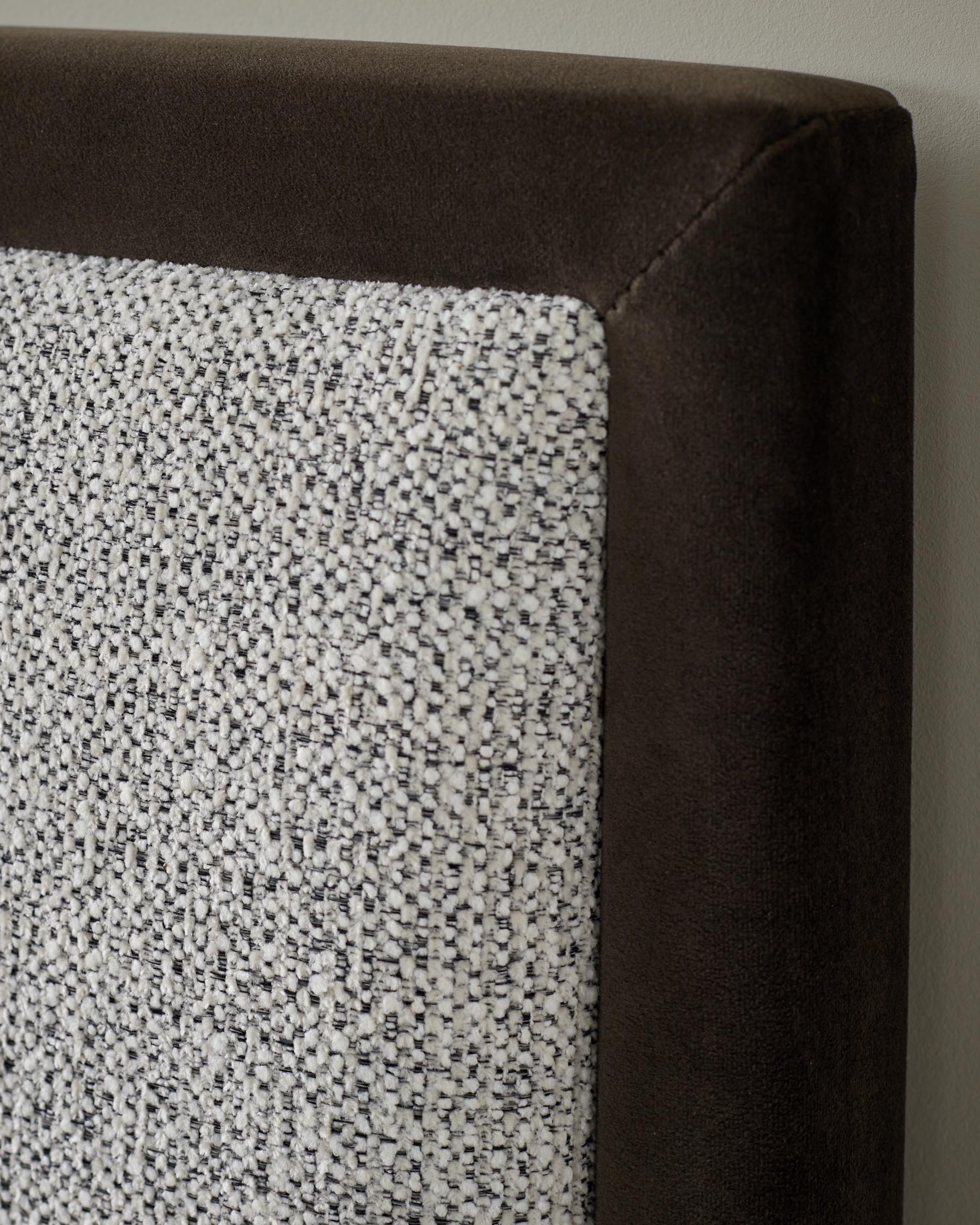 - Grey chunky chenille fabric with mocha velvet trim