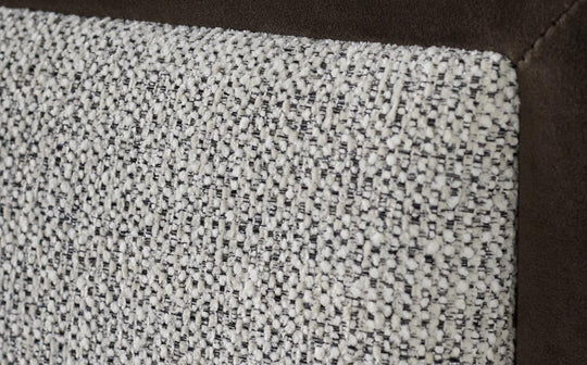 - Grey chunky chenille fabric with mocha velvet trim