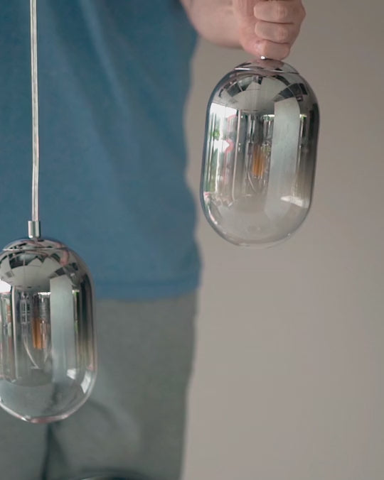 - 3 hand-blown glass shades with metallic grey ombre finish