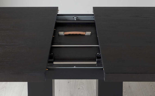 The Morgan dark oak extending dining table brings effortless sophistication to dinner parties and everyday meals alike. Rich dark oak veneer meets a sleek pedestal base, creating a striking centrepiece that seats 6 normally, extending smoothly to accommodate 8 when friends arrive. The clever concealed extension mechanism and generous legroom make hosting feel natural and relaxed.
