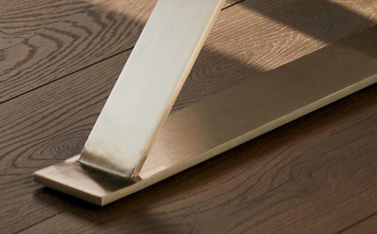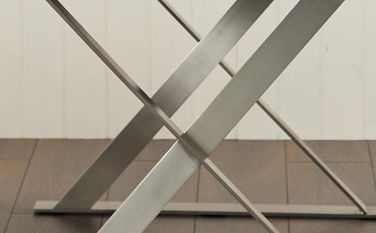 The Nala black wood extending dining table combines sophisticated style with smart functionality. Its striking black wood top contrasts beautifully with brushed stainless steel crossed legs, creating a contemporary centrepiece for your dining space. The smooth extending mechanism effortlessly accommodates 6 to 8 guests, making it perfect for both everyday meals and special gatherings.