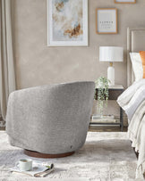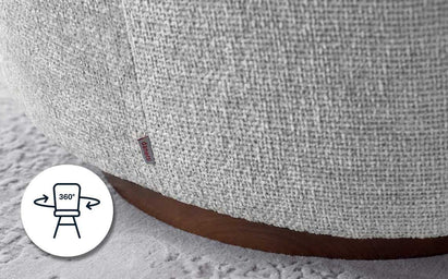 The Natalia light grey chunky weave swivel accent chair brings contemporary comfort to any corner of your home. Its curved silhouette and 360-degree swivel base make it perfect for conversation areas or creating a cosy reading spot. The textured chunky weave fabric adds visual interest whilst wooden legs provide a natural warmth to this versatile piece.