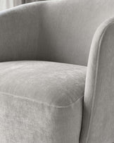The Natalia light grey chenille swivel accent chair brings sophisticated comfort to any corner of your home. With its luxuriously soft heritage chenille upholstery and graceful curved silhouette, this compact chair fits beautifully in bedrooms, reading nooks or living spaces. The smooth 360-degree swivel base makes it perfect for conversation areas, letting you turn effortlessly between guests or towards your favourite view.