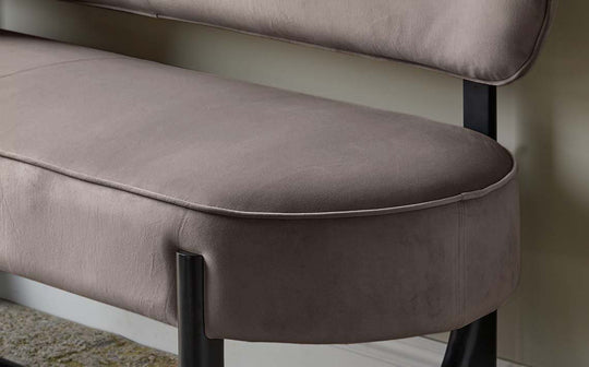 Thoughtfully designed to transform your dining space, the Orlan mocha velvet 3 seater dining bench brings sophisticated comfort to every gathering. Rich mocha velvet upholstery creates an inviting warmth, while the distinctive wooden legs flow seamlessly into the supportive backrest. Perfect alongside the Orlan dining table or styled independently in a hallway with a console table.