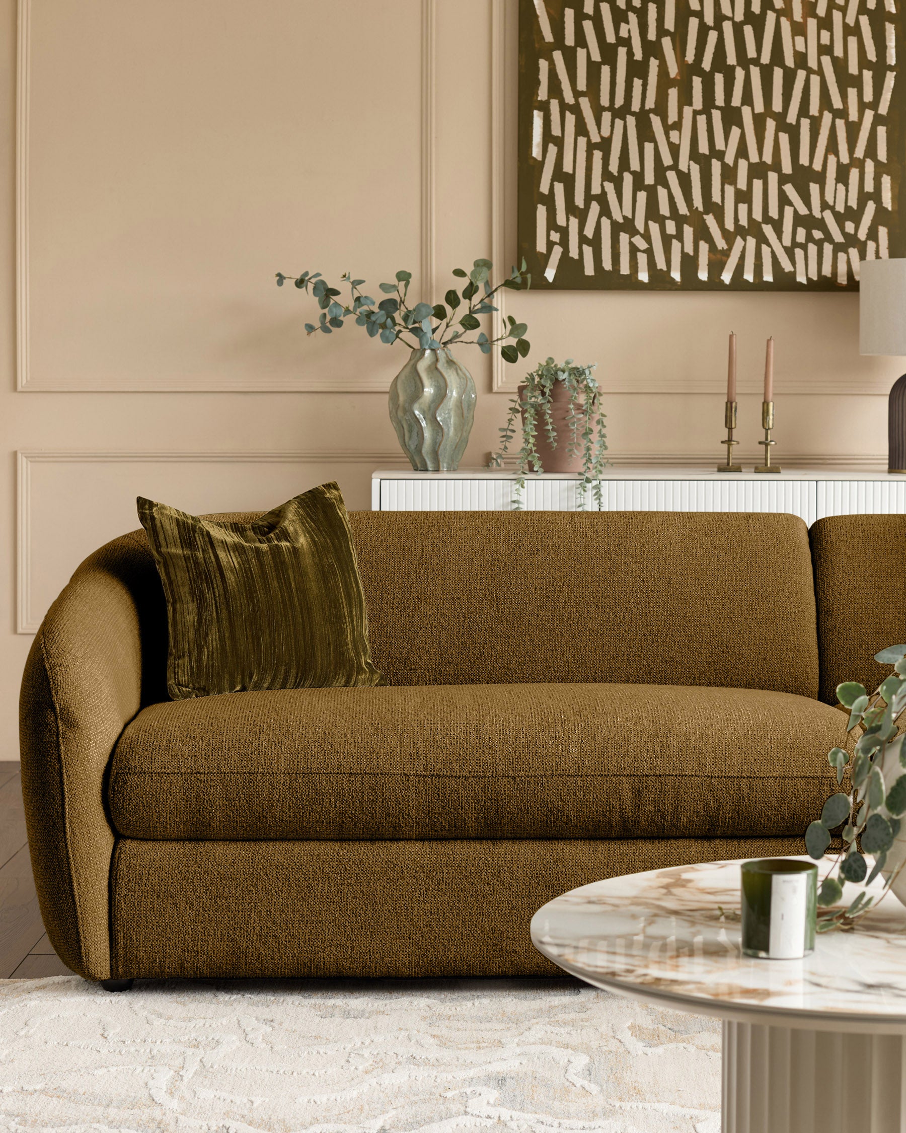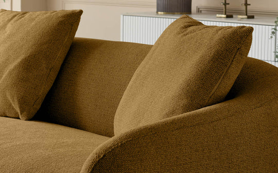 Vibrant, welcoming and beautifully tactile, the right-hand Ottilie in Ochre plush chenille brings playful sophistication to your living space. Its right-hand curve opens the room, inviting a natural flow while offering a generous lounging area designed for the way you actually live. Every detail from the gentle rise of the back to the sculpted cushioning Ñ has been thoughtfully crafted in our Design Studio to create comfort with intention. The plush chenille is luxuriously soft with durability that keeps pace with real-life behaviour. Ottilie transforms any setting into a space where life gathers, from lively evenings to restorative pauses. Built to last and made for moments that matter, this striking ochre design balances function and beauty with effortless confidence.