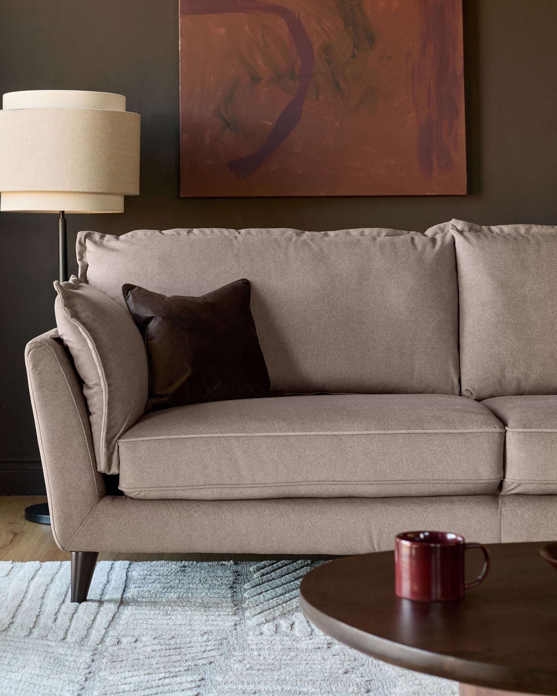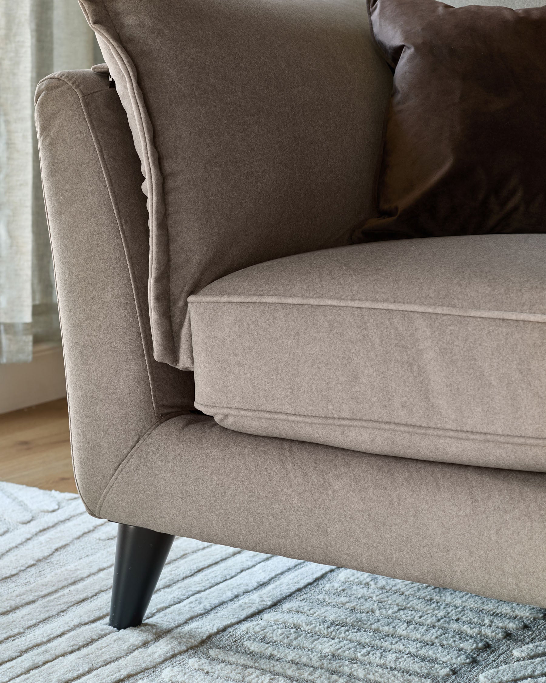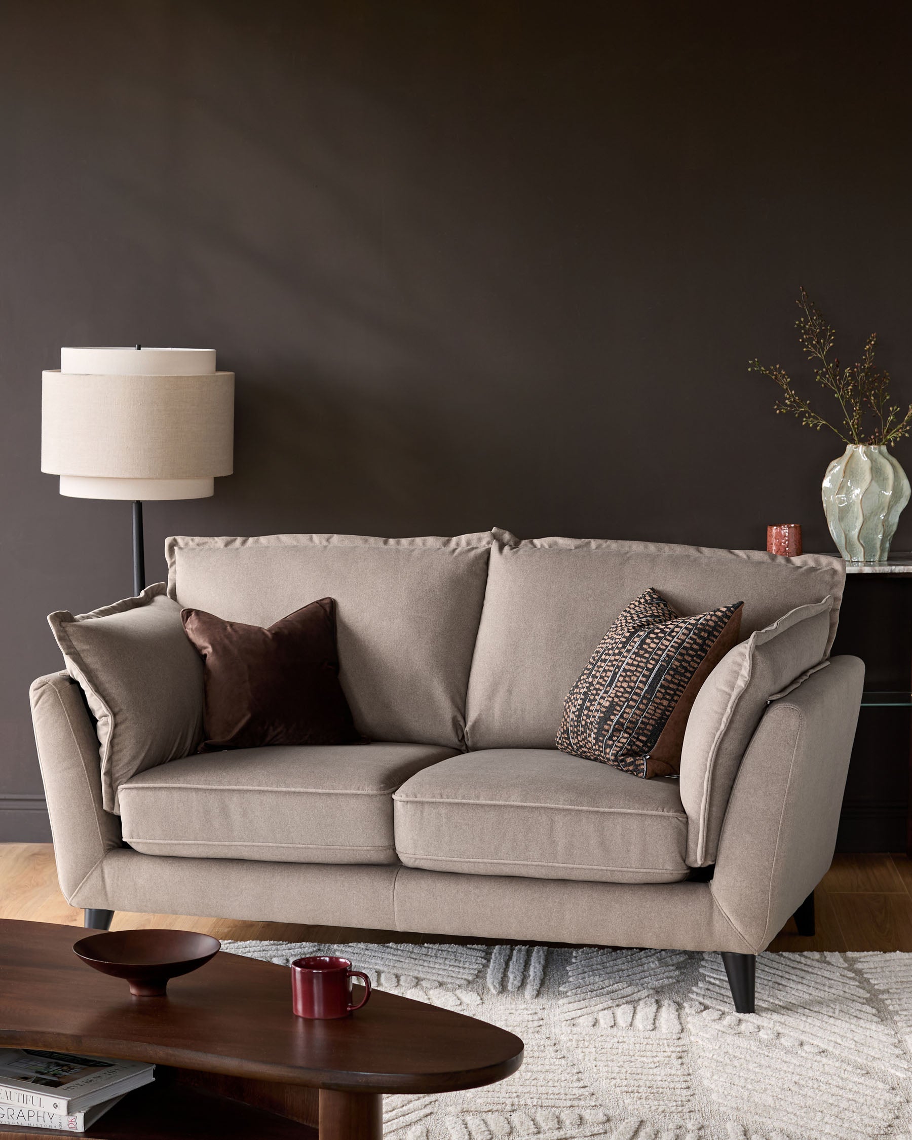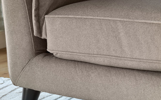 The Otto mocha fabric 2 seater sofa brings soft curves and sink-in comfort to your living space. Upholstered in smooth plush, soft velvet-like fabric with a velvety finish, this compact sofa fits perfectly in smaller rooms while still offering indulgent comfort. With pillowed edge detailing and pocket springs that conform to your body, Otto is designed for those cosy evenings when only proper comfort will do.