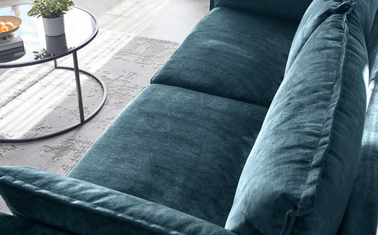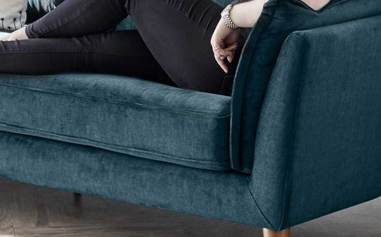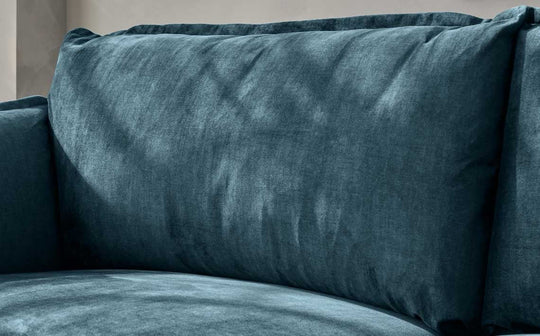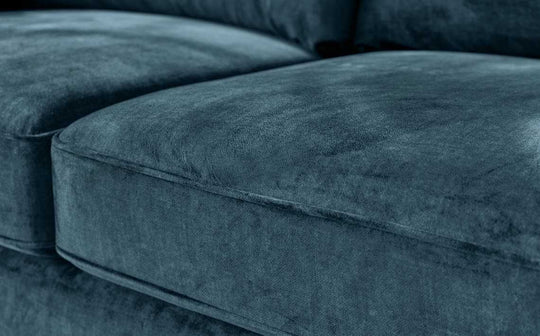 The Otto dark blue chenille 2 seater sofa brings relaxed Scandi style to your living space. With its inviting pillow-edge detailing and soft chenille upholstery, it's perfect for curling up with a book or stretching out after a long day. The sophisticated dark blue adds depth to smaller living rooms or creates a cosy corner in larger spaces.