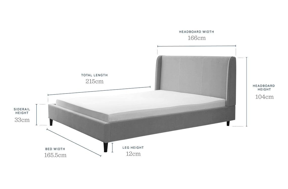 • Size: W: 166cm x D: 215cm x H: 104cm (headboard)